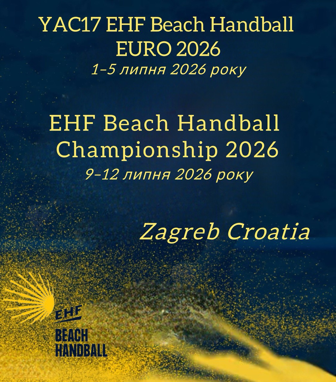 Наступне літо обіцяє бути гарячим, адже Загреб прийматиме одразу два топові турніри з пляжного гандболу: YAC17 EHF Beach Handball EURO 2026 та EHF Beach Handball Championship 2026 !